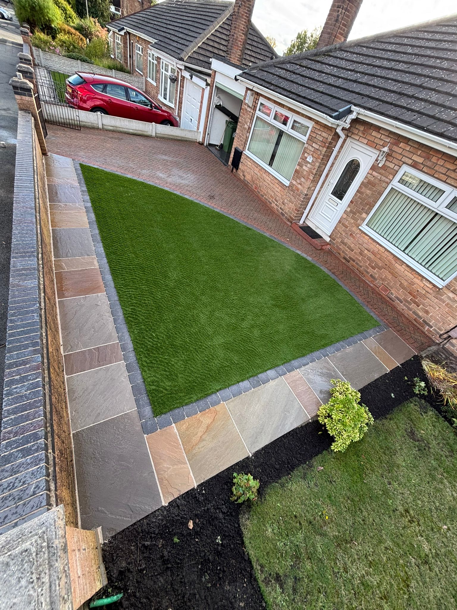 M.K Landscapes provide a huge range of driveways from cobbled block paving to Indian sandstone.